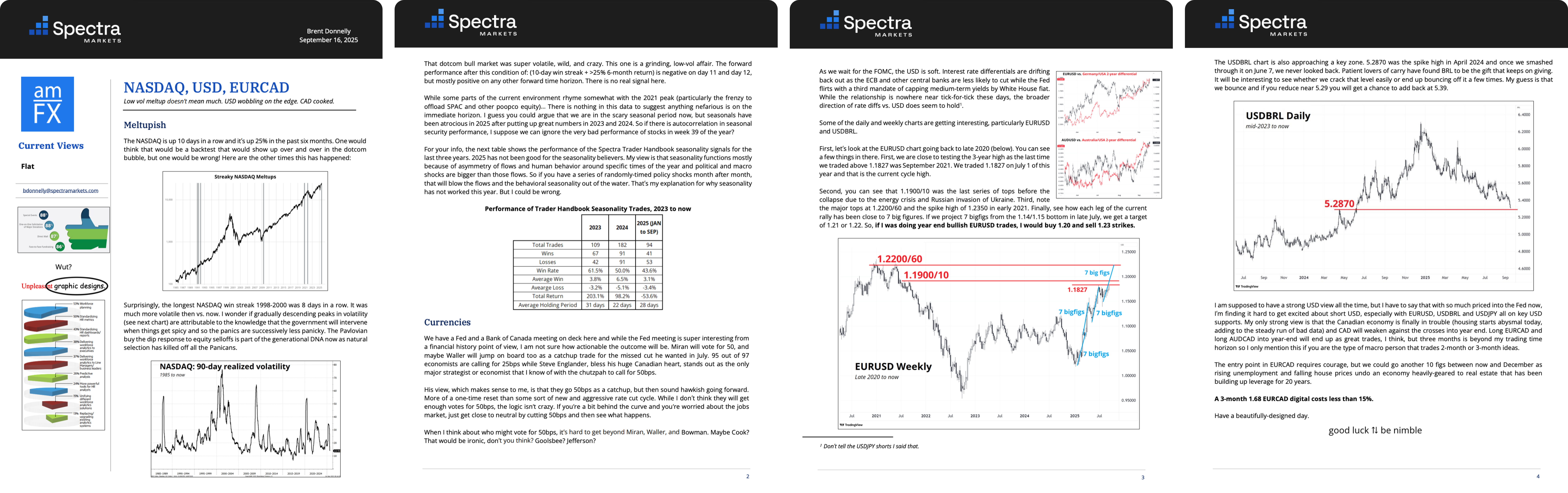 "text": "My only strong view is that the Canadian economy is finally in trouble (housing starts abysmal today, adding to the steady run of bad data) and CAD will weaken against the crosses into year end.",